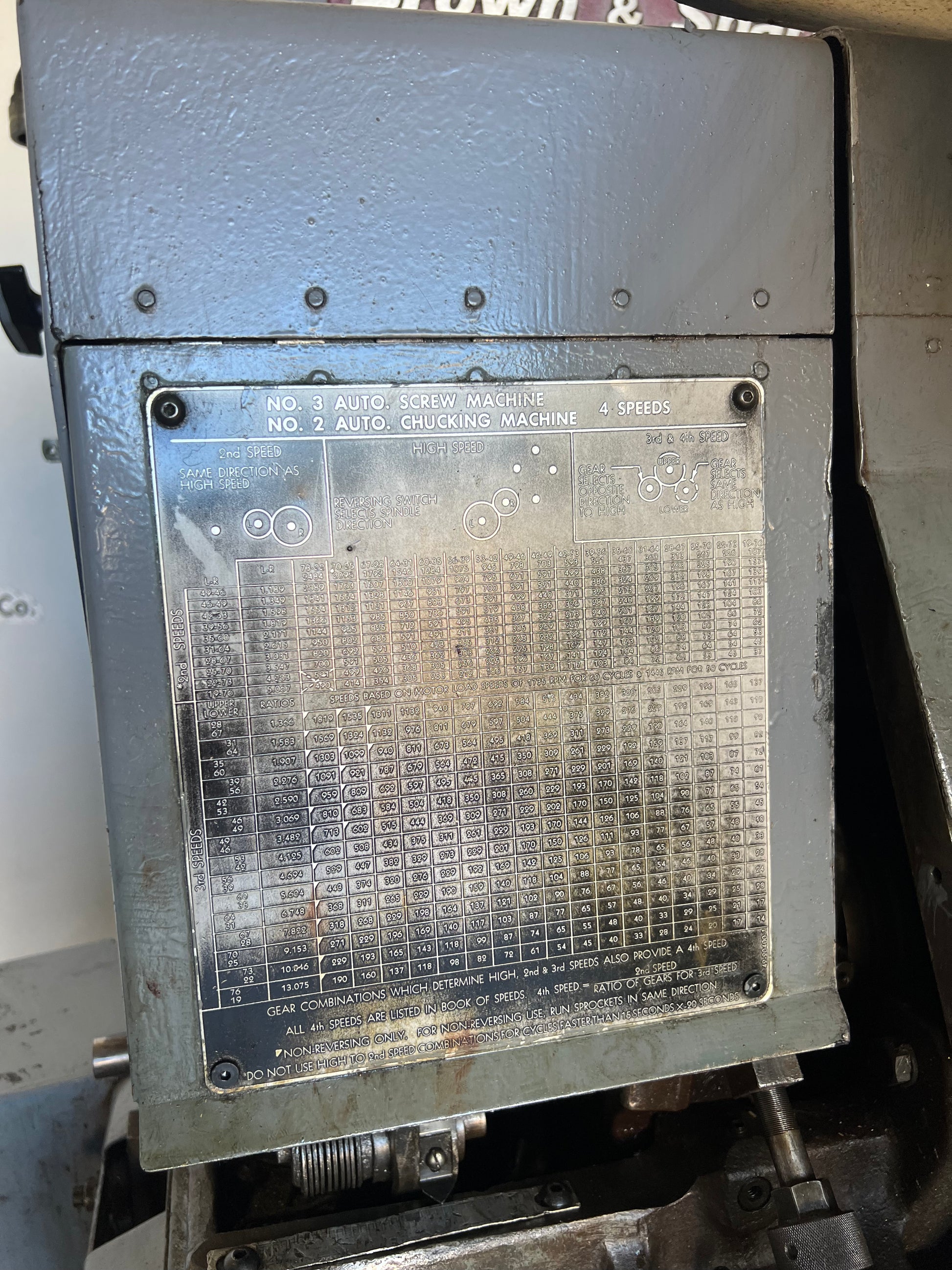 BROWN & SHARPE NO. 3 SCREW MACHINE 4 SPEEDS